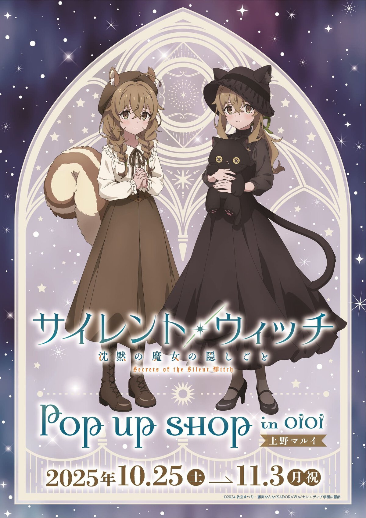 東京・上野マルイにて、TVアニメ『サイレント・ウィッチ 沈黙の魔女の隠しごと』のポップアップショップが2025年10月25日(土)より開催。描き下ろしイラストを使った多数の新作アイテムが販売されるほか、オリジナルグッズが当たる抽選会も実施される。