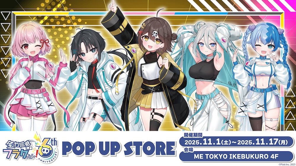 YouTubeチャンネル登録者数230万人超の人気ショートアニメ『全力回避フラグちゃん!』が6周年を迎え、記念のポップアップストアが東京・池袋のME TOKYO IKEBUKUROで2025年11月1日(土)より開催中。6周年オリジナルイラストを使用したグッズが販売されるほか、フォトスポットエリアや等身大パネルの設置と、このポップアップストアでしか聞けない店内放送アナウンスが用意されている。
