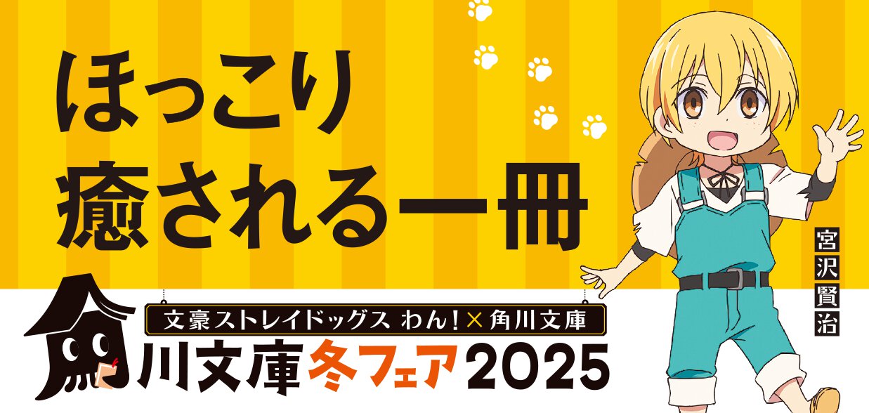 2025年12月8日(月)より、全国の書店にて「角川文庫冬フェア2025」を開催中。「名作 わん!ダーランド」をテーマに、TVアニメ『文豪ストレイドッグス わん!』やCalbeeポテトチップス、人気Vtuberとのコラボのほか、豪華賞品が当たるキャンペーンなどが実施される。この機会に書店へ足を運び、名作たちに触れてみよう!