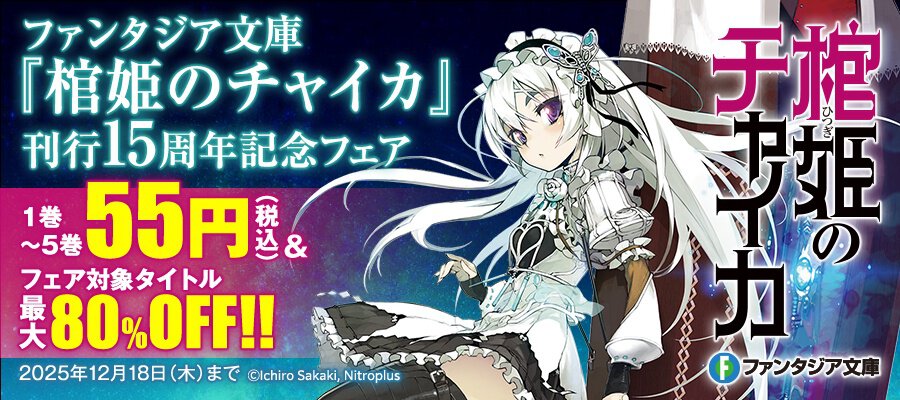 ファンタジア文庫『棺姫のチャイカ』が2025年12月に刊行15周年を迎え、記念のフェアを開催中です!