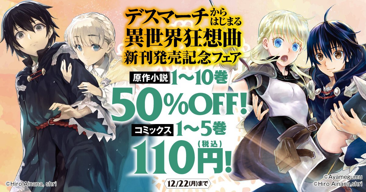 【電子フェア】『デスマーチからはじまる異世界狂想曲』コミックス新刊発売記念! 原作小説1〜10巻が50%OFF、コミックス1〜5巻が1冊110円に!