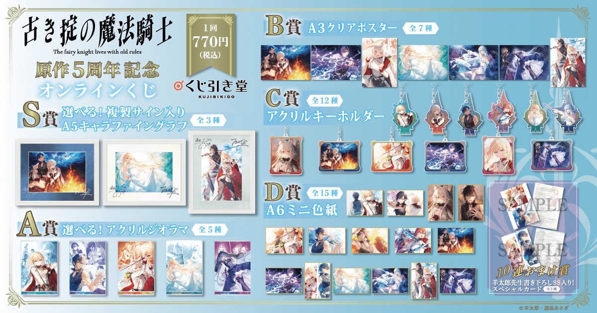 オンラインくじサービス「くじ引き堂」にて、ファンタジア文庫の人気作『古き掟の魔法騎士』の原作カバーイラストや口絵を使った豪華賞品が手に入る、原作5周年くじが2025年12月2日(火)より販売される。