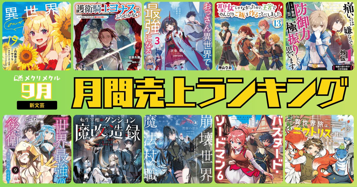 2025年8月26日~2025年9月25日に刊行された、KADOKAWAの新文芸ジャンルの売上ランキング(※KADOKAWA調べ)から、トップ10をお届けします。ランキングを見れば、次に読むべき一冊がきっと見つかる!